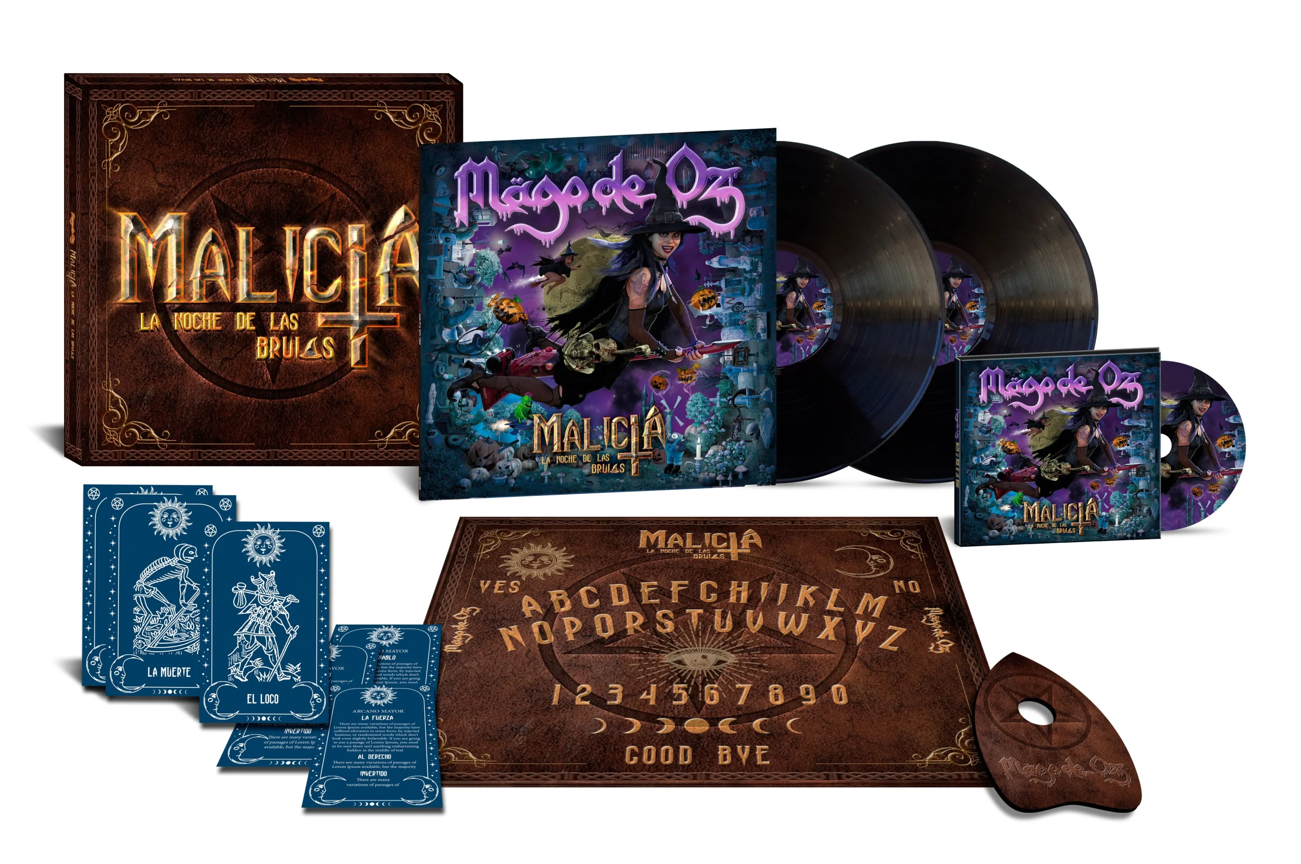 Incluye Vinilo Doble + CD + Tablero de OUIJA con Planchette + 6 Cartas de Tarot + un código para participar en un encuentro ONLINE con varios de sus componentes.