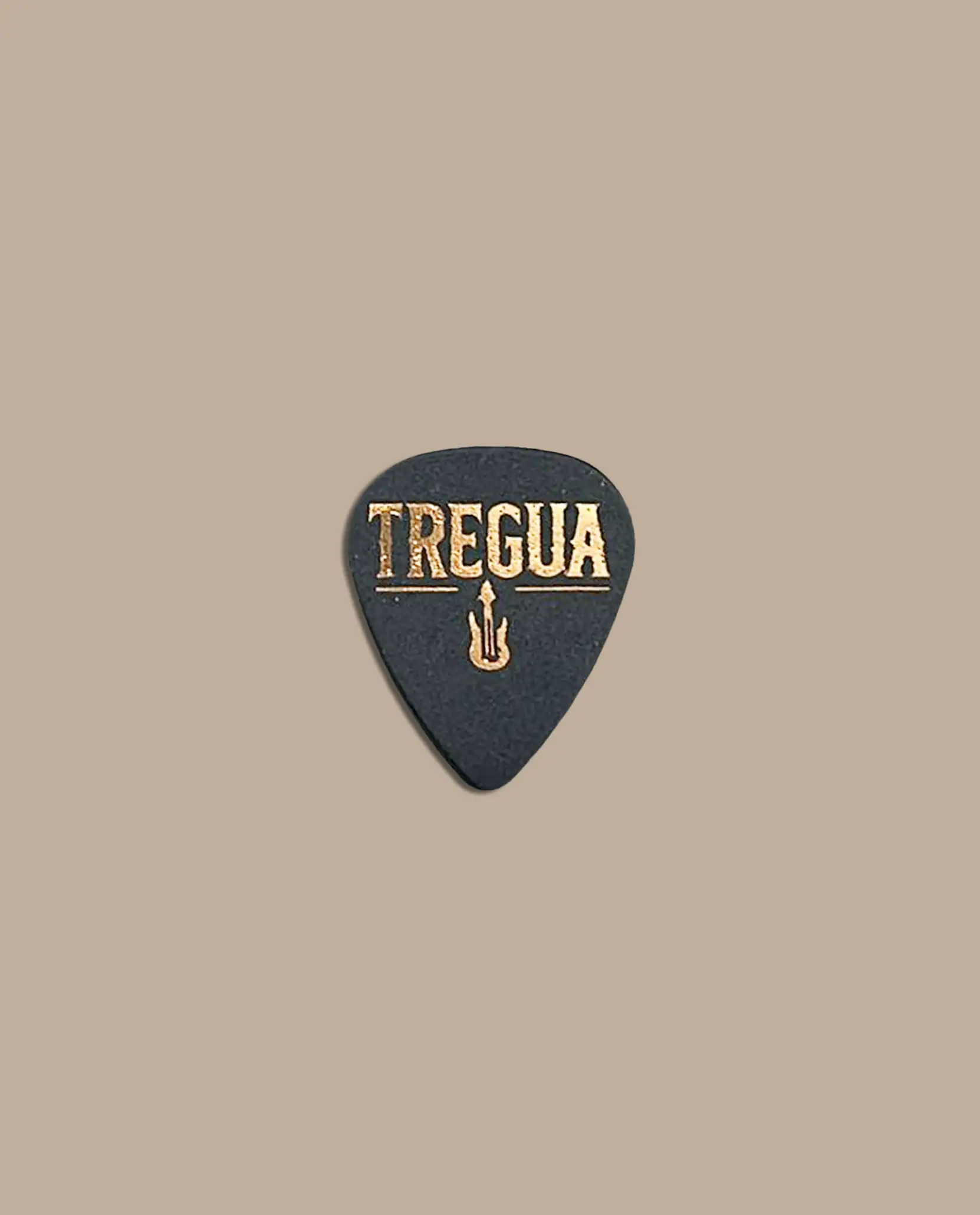 Púa de color negro con diseño exclusivo modelo Logo Tregua en bronce de la colección “Tregua”. ¡Hazte con ella!
